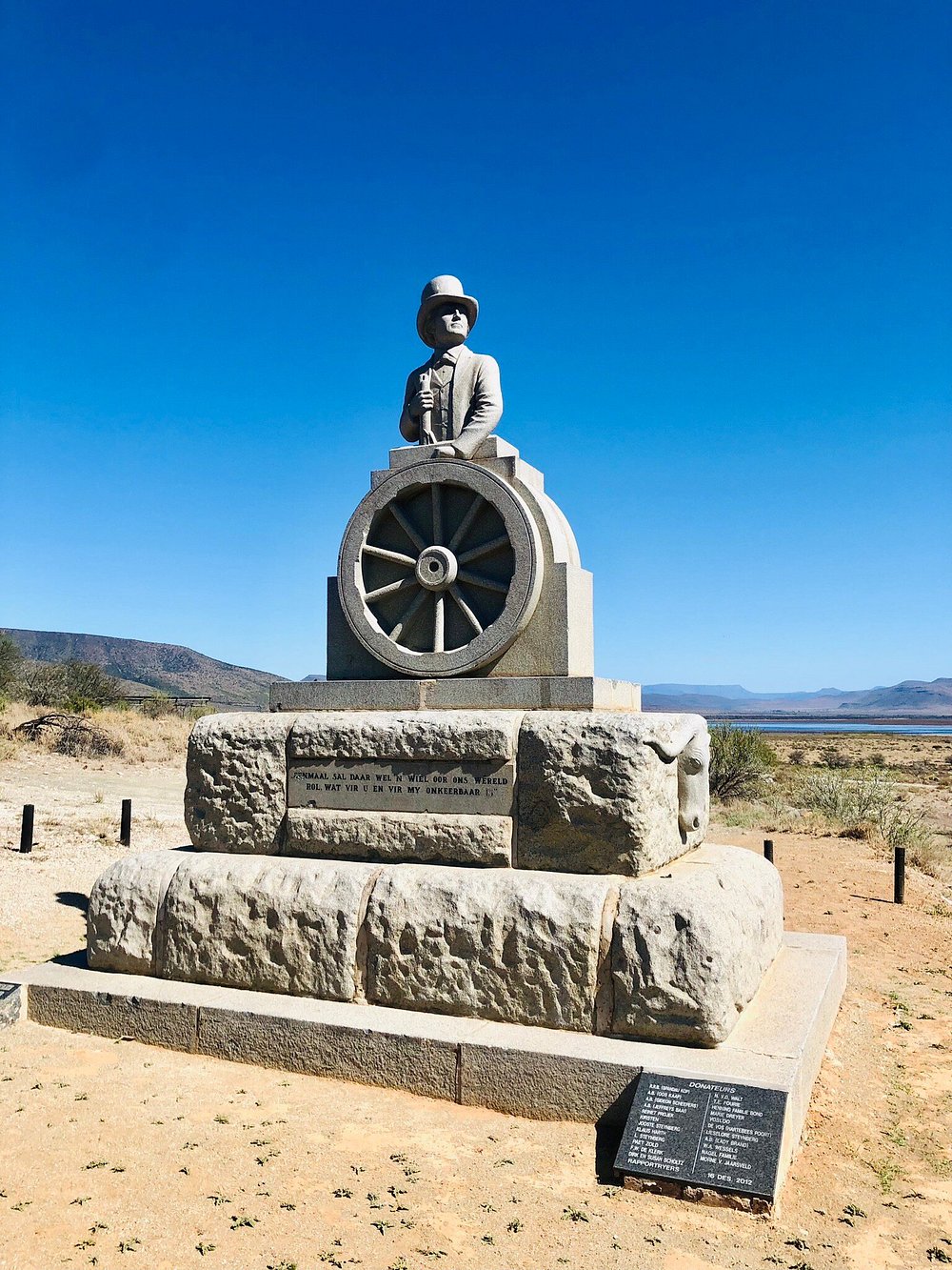 The Andries Pretorius Monument at Graaff-Reinet in honour of Pretorius, Gerrit Maritz and the other Voortrekkers from that area was unveiled on 27 November 1943. The monument was sculpted from granite by Coert Steynberg, is approximately 5 m high and initially stood along the main road to Middelburg . To protect it from vandalism, it was moved in 2012 to just inside the boundaries of the Kamdeboo National Park . On the base of the monument is written: