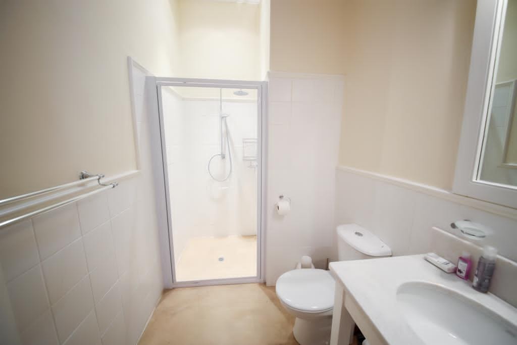 The one bathroom has a shower and a bath and two basins with toilet. The other en-suite bathroom has a basin, toilet and shower. The living room has a guest toilet. The bathrooms have the amenities you will need for your stay.