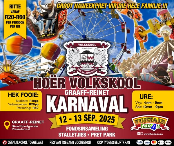 Volkskool High School hosts their Carnival at the Graaff-Reinet School Sportsgrounds on the 12th and 13th of September.
