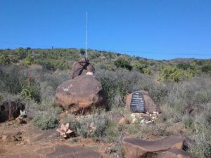 The Gideon Scheepers monument was erected by the Graaff-Reinet Afrikaans Cultural Society to honour a man regarded by many as a hero during the Anglo Boer War. He started his own commando during the war which operated in the Cape Midlands. He was eventually charged of alleged war crimes. Court hearings were in Graaff-Reinet and he was found guilty and sentenced to death. The memorial is three rocks supporting a steel needle and a fourth rock with an inscription. It can be found about 2km from the town near the site of his execution.