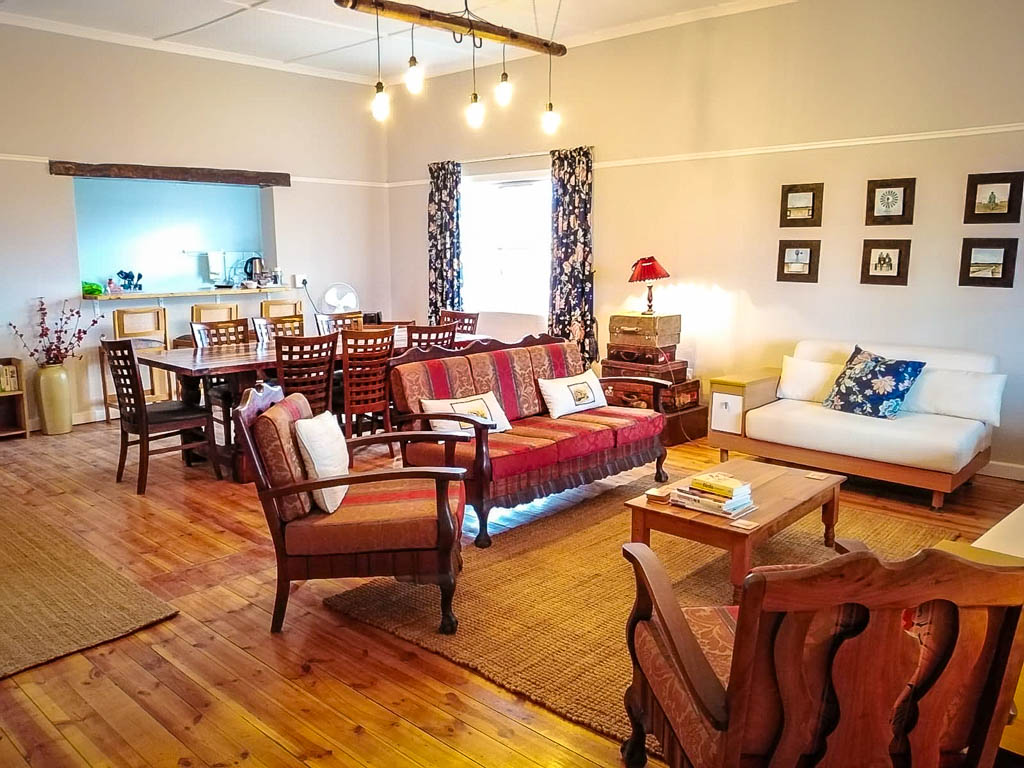 This beautiful period house in the Aberdeen district of the Eastern Cape Karoo, was built in the 1950’s for the then farm manager, “Oubaas”, Mr Weyers and his wife. They also had a son, Ferdie. The original homestead had no electric power, therefore paraffine lights were used. The Weyers’ had an old wood stove to cook on. One can still see the relic slab of concrete on the floor in the Springbuck room, which was the original kitchen. There was only one bathroom in the centre of the house. This had a bath, basin and toilet. The water was heated by the old fashioned “Donkey system”. This was an outside fire pit which had to be manually stocked with wood. The outside shower gives you an idea of this donkey system. The bathroom has since been converted to a more modern open plan kitchen. We removed a wall of the old “Voorkamer” (evidence can be seen on the floorboards) to make a bigger open plan lounge /dining room as you see now. All the rooms were painted in interesting colours. Some were bright blue, yellow and green! Luckily fashions have changed!