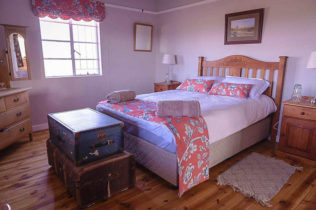 The farm is ideal for cyclists with safe district and jeep track roads. There are also various hiking/running trails available. Karoo Secret is located at the farm Rooidraai, a working sheep farm where Chris also does herding sheepdog training. We are a recognised accommodation with BIRDLIFE SA and have allocated bird routes. Karoo Secret’s “Secret House”, sleeps up to 6 guests in en-suite rooms, or 9 guests with a shared bathroom. The homestead has full kitchen facilities, a spacious lounge and dining room, and a spacious ‘voorstoep’. There is also a storage facility for bicycles etc.