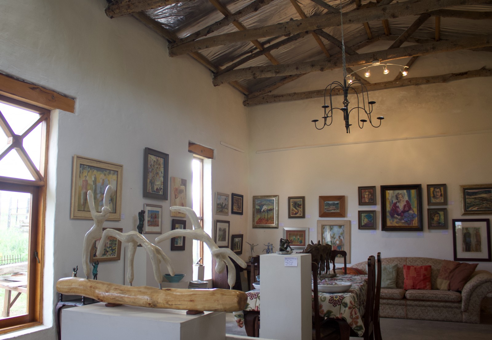 Sheena’s oil paintings, pastels and sculptures are exhibited in a wonderfully restored barn, with her larger sculptures placed in the extensive indigenous garden and surrounding farm fields.