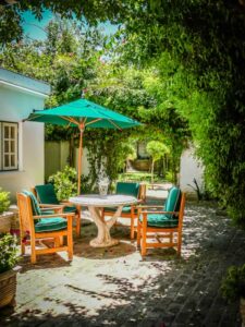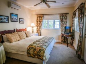 To ensure a comfortable stay, No. 6 Guest House has 3 generous bedrooms, 2 bathrooms (1 en-suite), a well equipped kitchen, sitting room and separate dining room and an enchanting private garden with braai facilities.