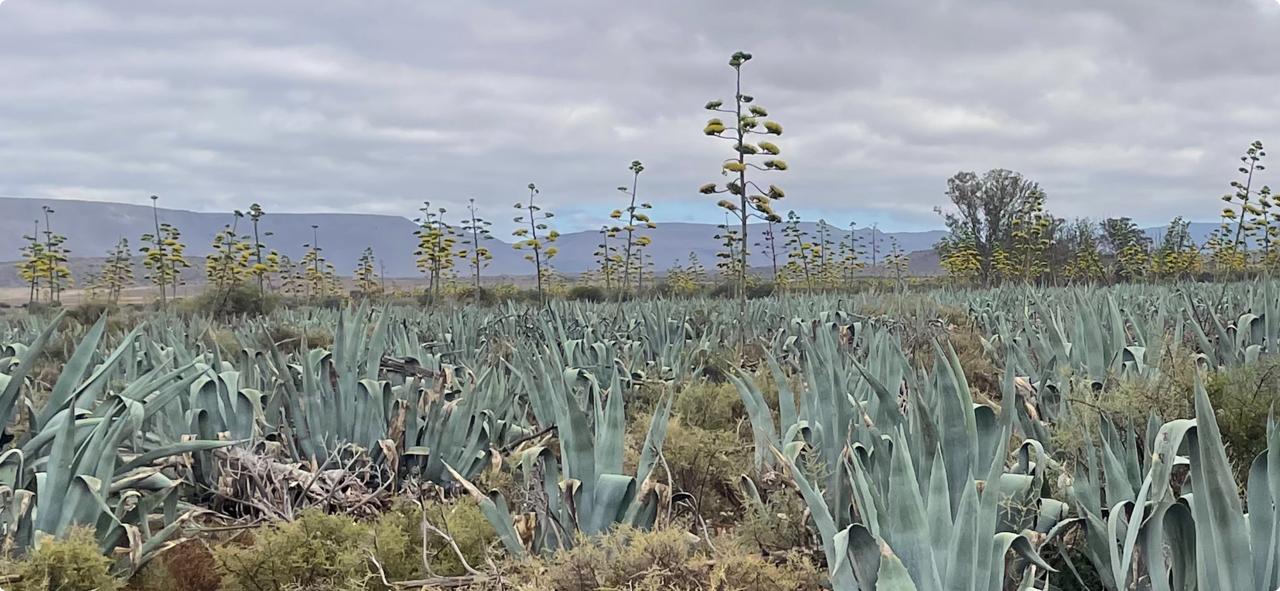 Their Giant Agave plant, a cousin to the Mexican Blue Weber tequila plant, thrives in the harsh yet majestic Great Karoo landscape.