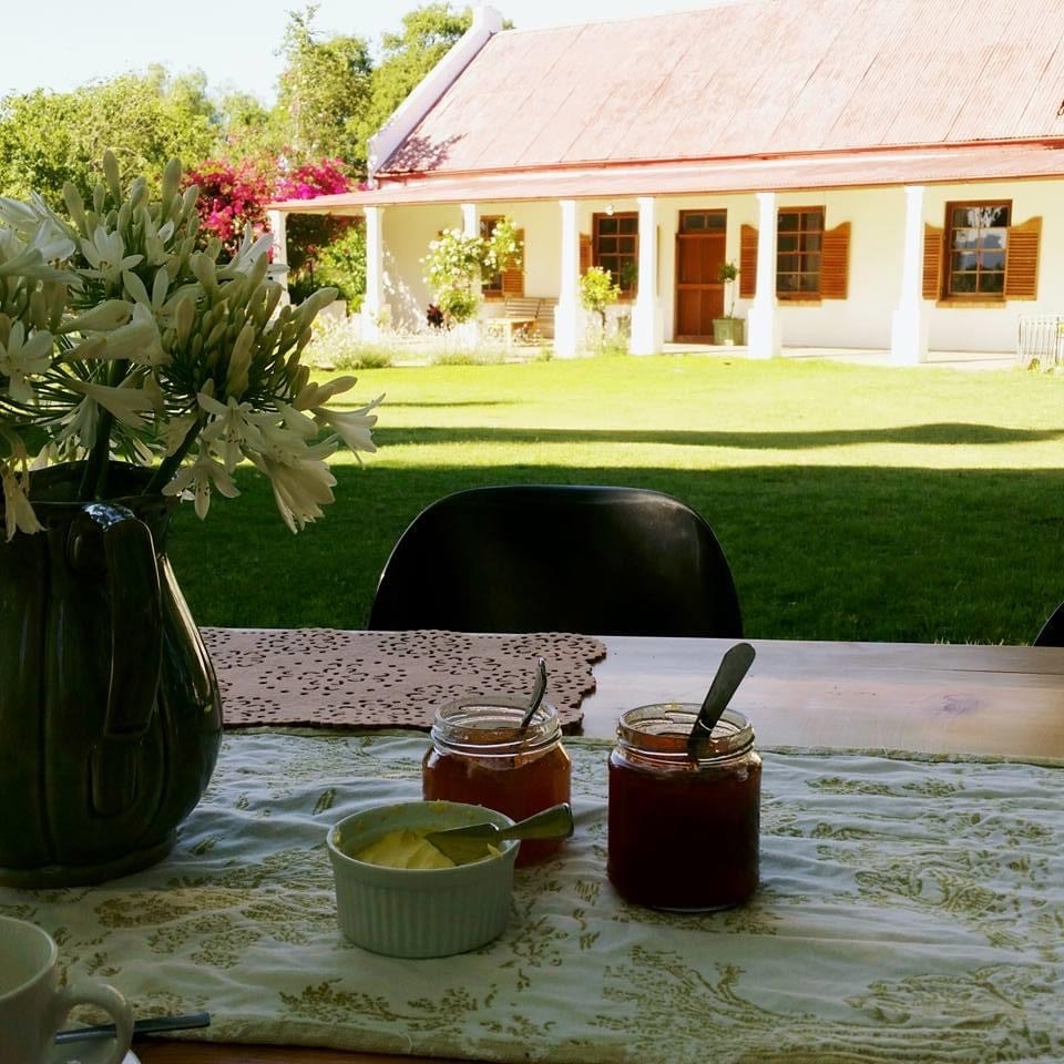 Our spacious farmhouse, nestled in a lush garden, is ideal for those who love to spend time with their friends and family. Kids can enjoy the wide open spaces while you unwind with the smell of real South African braaivleis. If you prefer to be served, you can join us for a delicious Boere-Lunch or – breakfast, which will be available at request. Braaipacks, especially prepared by our friendly staff, will also be available on request. Guests can enjoy their privacy in their own farmhouse with a lovely veranda and very spacious garden. Our main Farmhouse consists of 4 bedrooms, fully kitted kitchen, dining room, lounge with fireplace and 2 bathrooms. Guests are encouraged to enjoy the natural beauties on offer by taking walks along and up the mountain where you will enjoy the natural wildlife. Other activities include picnics, BBQ in the veld and tractor trips for the young ones. We are looking forward to welcome you to the serine and tranquil farm-style living second to none.
